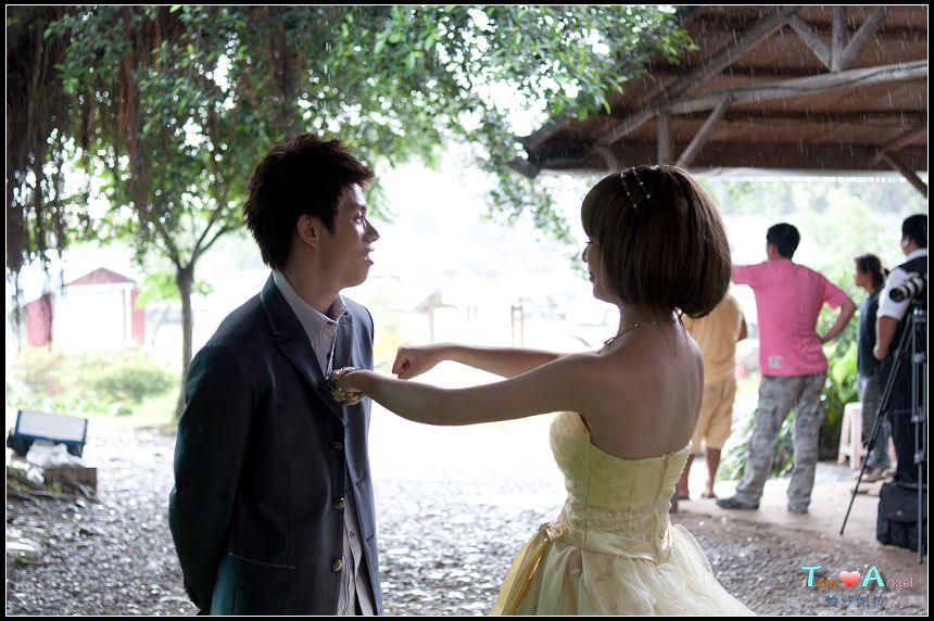 回撤到室內區>/////< ,這時候超壯觀,室內聚集了二十來組的新人,都在等雨停,不過也有新人在外頭持續拍攝,非常敬業啊