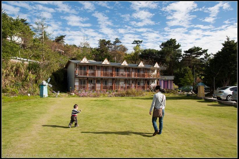 這邊是歐式木屋前的草皮,看的出民宿主人很用心的維護,草皮踏起來很舒服,小朋友在此處遊玩的很開心,只是歐式木屋的VIEW沒有原木木屋好。