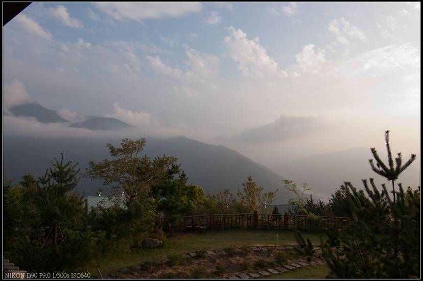 8點多的陽台遠方的山脈清晰可見,居高位眺望著山景,看著美景呼吸著山上的新鮮空氣,一整天的心情都好起來