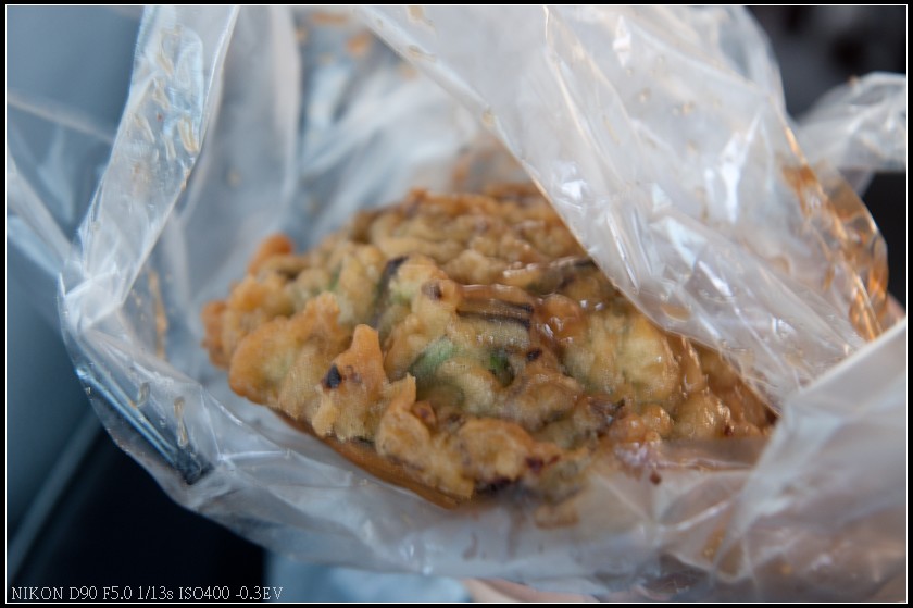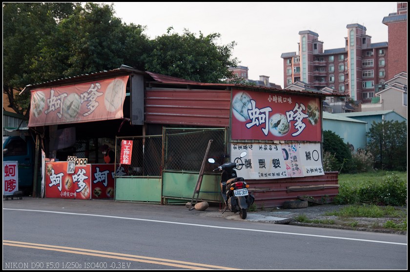 第一次看到的時候還很訝異怎麼這地方還有賣蚵嗲,當時的只有簡單的棚子,一台小貨車就營業,後頭就是一片荒蕪,雖然有擺設桌椅但用餐環境真的不大好,但每次經過看到店家生意都不錯,甚至到有人排隊等候,直到有次鼓起勇氣買了一顆來嚐嚐才發現原來生意好不是沒有道理的,用料紮實且火候控制得宜,難怪能吸引顧客。