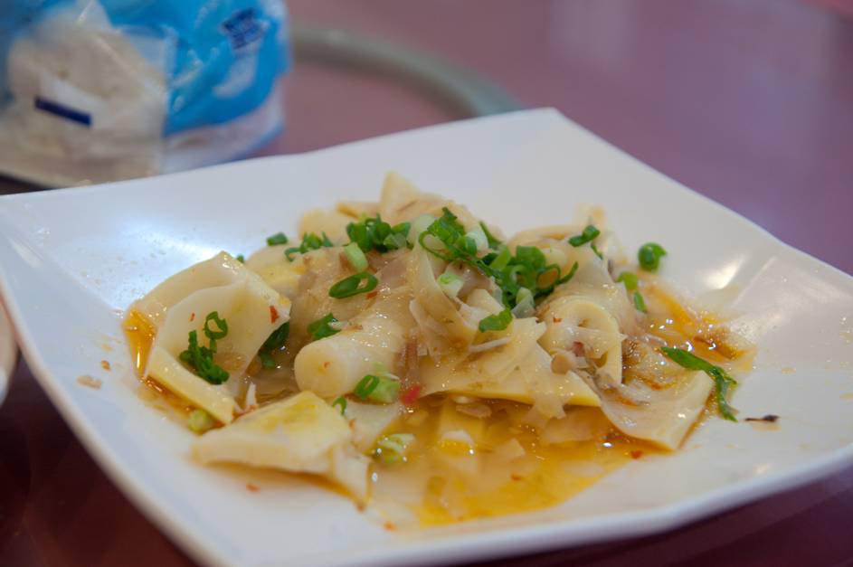 醬香桂竹筍(100元):太慢拍照已經被夾走一些,實際上的份量是比照片中還多,桂竹筍軟嫩可口,些許的辣味挺開胃的。