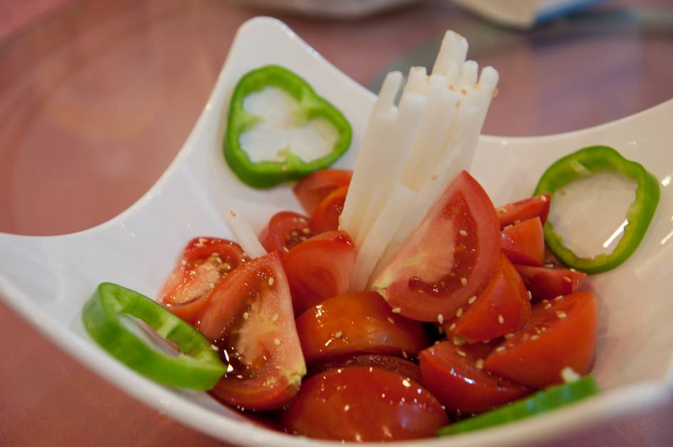 冰梅山藥(150元):相當特別的開胃菜,切成條狀的山藥被大量的番茄包圍,淋上梅汁冰涼酸甜的口感,吃進口中相當舒服,夏天吃應該特別開胃,不過那青椒應該是配色功用居多,