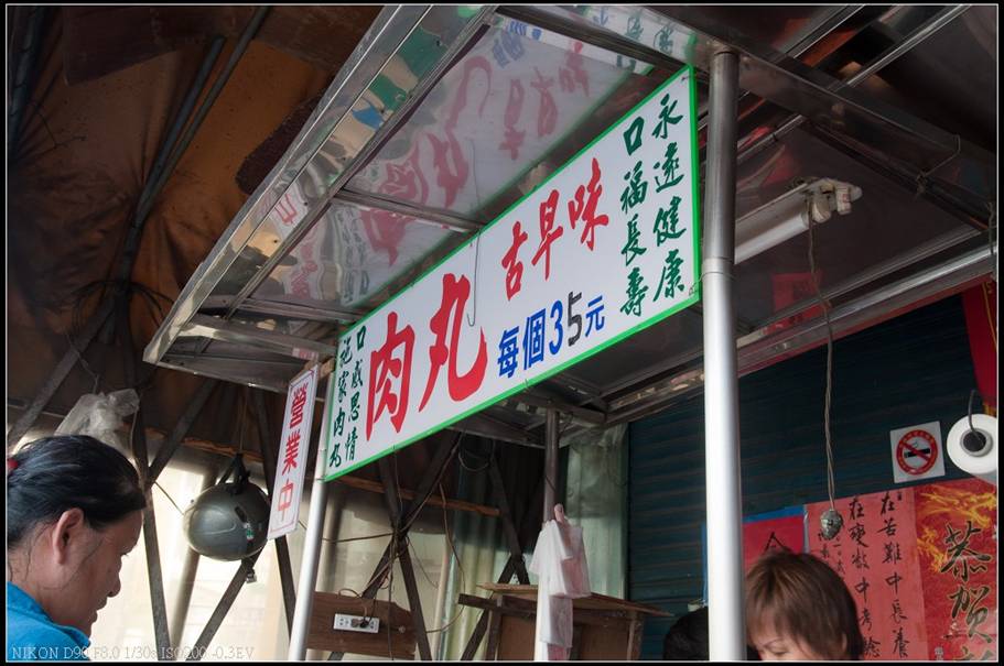 施家肉圓店面不大,裡頭大概就兩三張小桌子,攤位上頭的小招牌有經過塗改的35元,在這萬物皆漲價的時代也不意外。