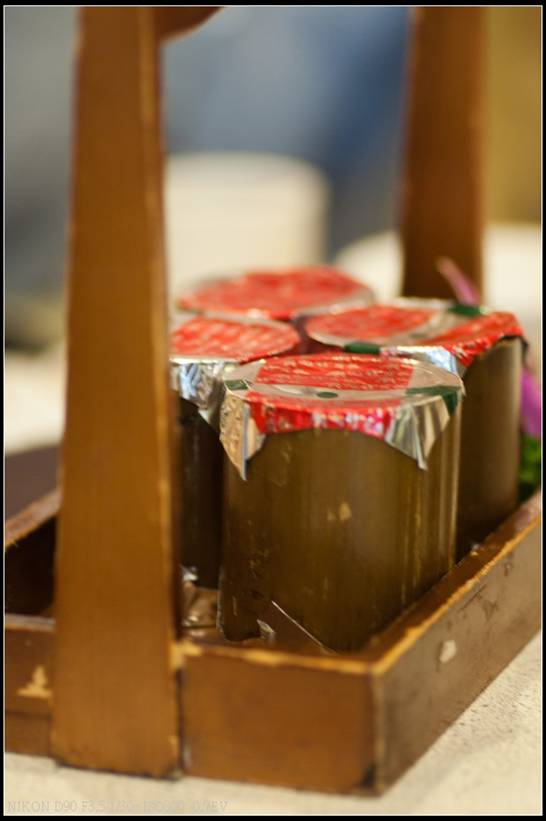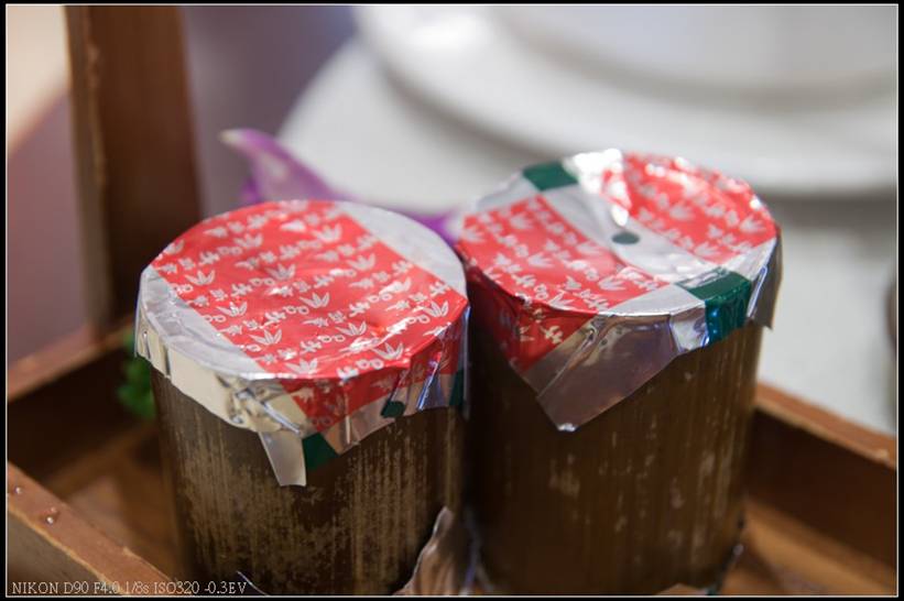 白飯是套餐附贈的,盛裝的器皿及飯匙還真獨特,白飯軟硬適中應該是使用南投地區的白米,相當好吃,不知道吃完再加要不要加錢,因為以上的菜色配上這桶飯就讓我們吃撐了,也就沒再加飯。