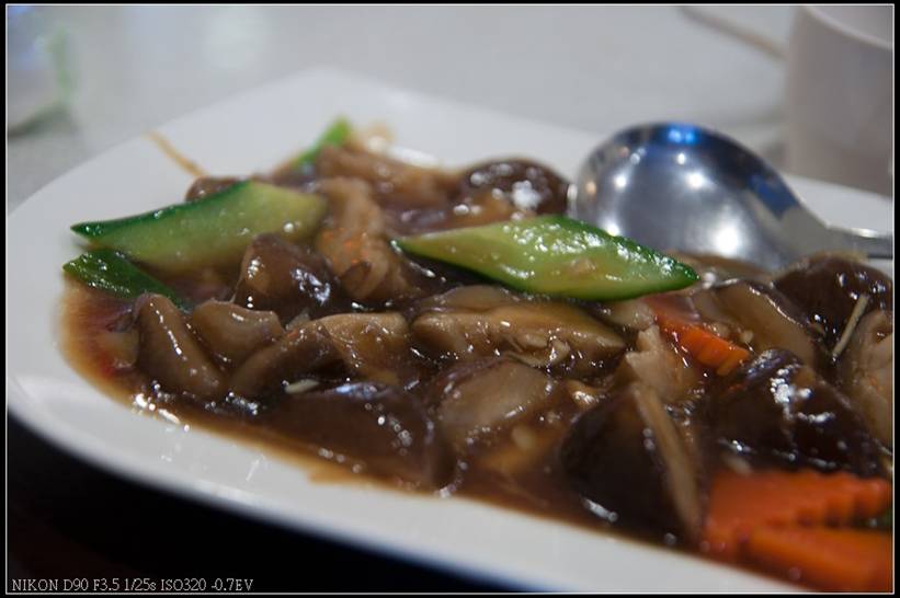 蠔油香菇(500元套餐):醬汁調味得宜不過鹹勾芡也很剛好,不會弄到整盤都黏乎乎,香菇本質也很棒,用料也夠實在,挖點醬汁淋飯正剛好。